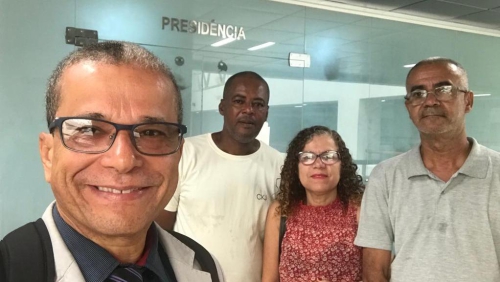 | Advogado e sindicalistas comemoram na porta da presidência do TJB |